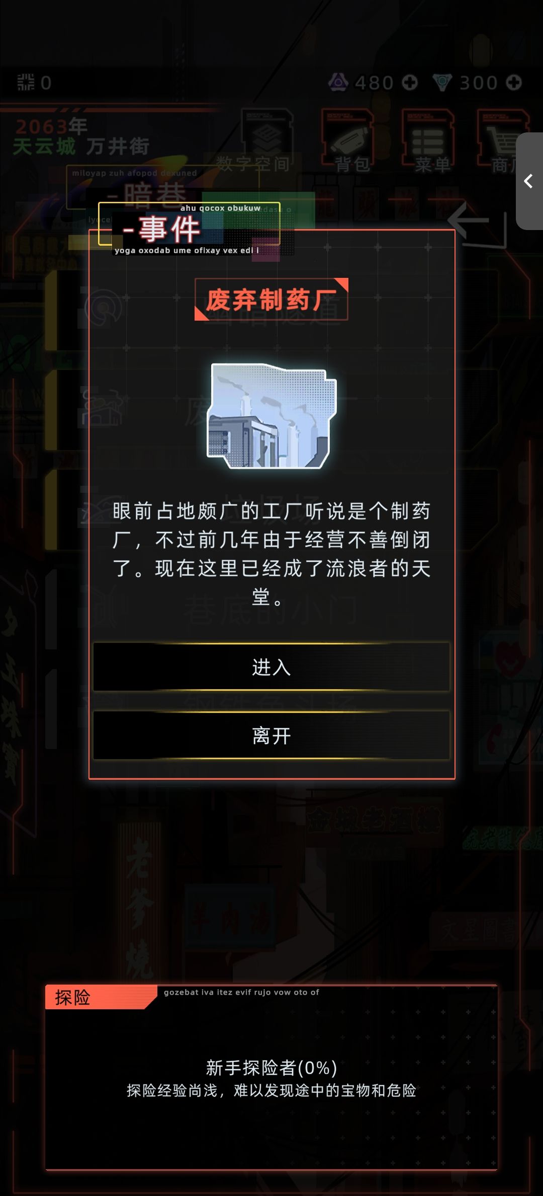 (4)【第5年】的活动界面虽然开了,但【暗巷】的【废弃制药厂】没开,继续过。