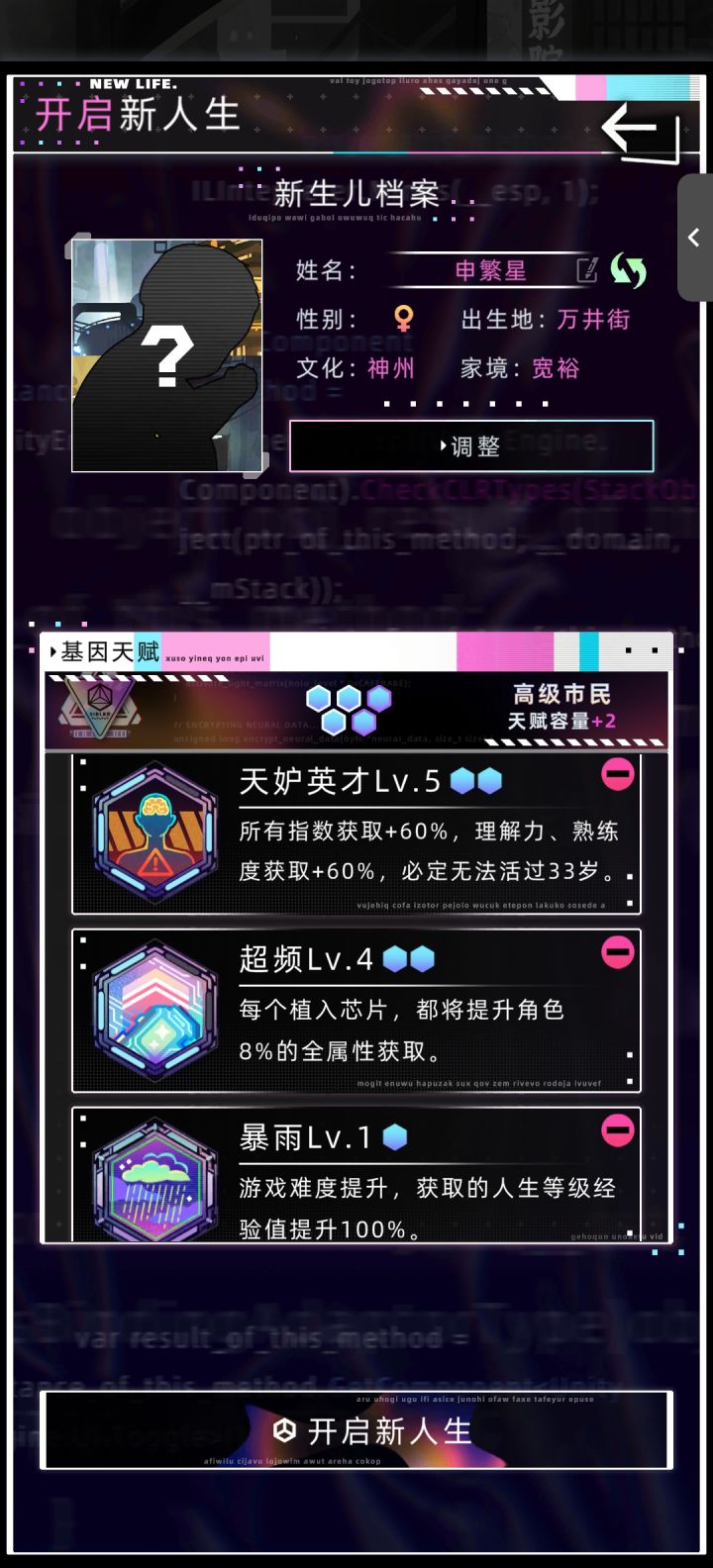 【暴雨】能使我们结算翻倍,至关重要。【天妒英才】和【超频】能让我们在前【六年】迅速获取大量的各项身体指数