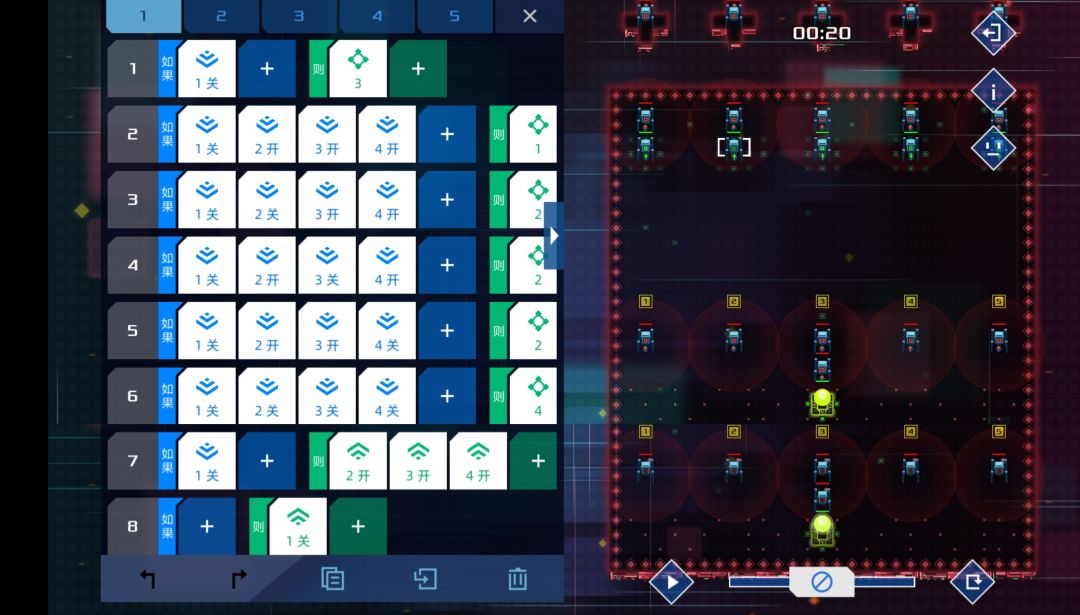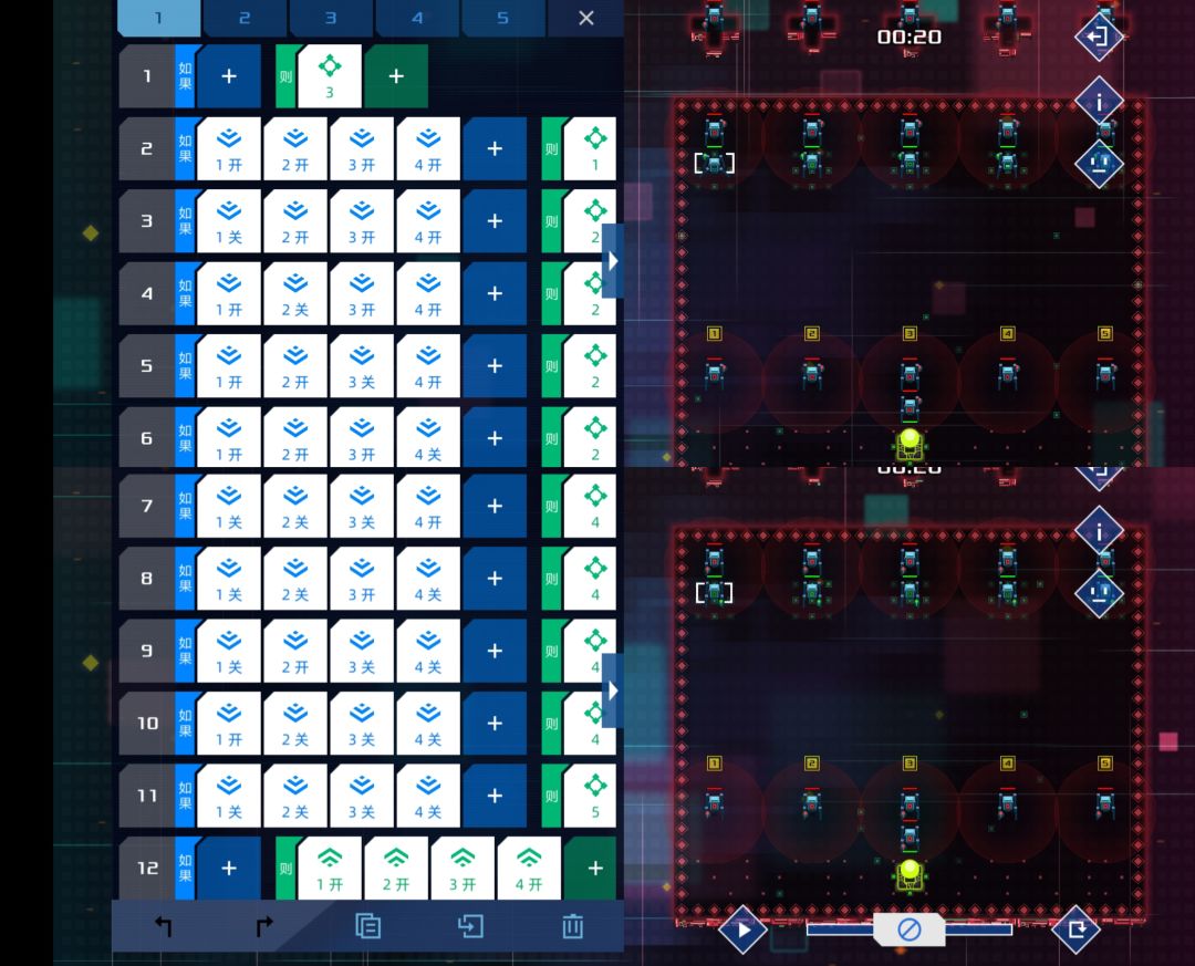 信号设置完后,根据存活数量进行移动,这里需要列举所有可能的信号组合,不过可以在第一行设置默认移动目标以减少行数。