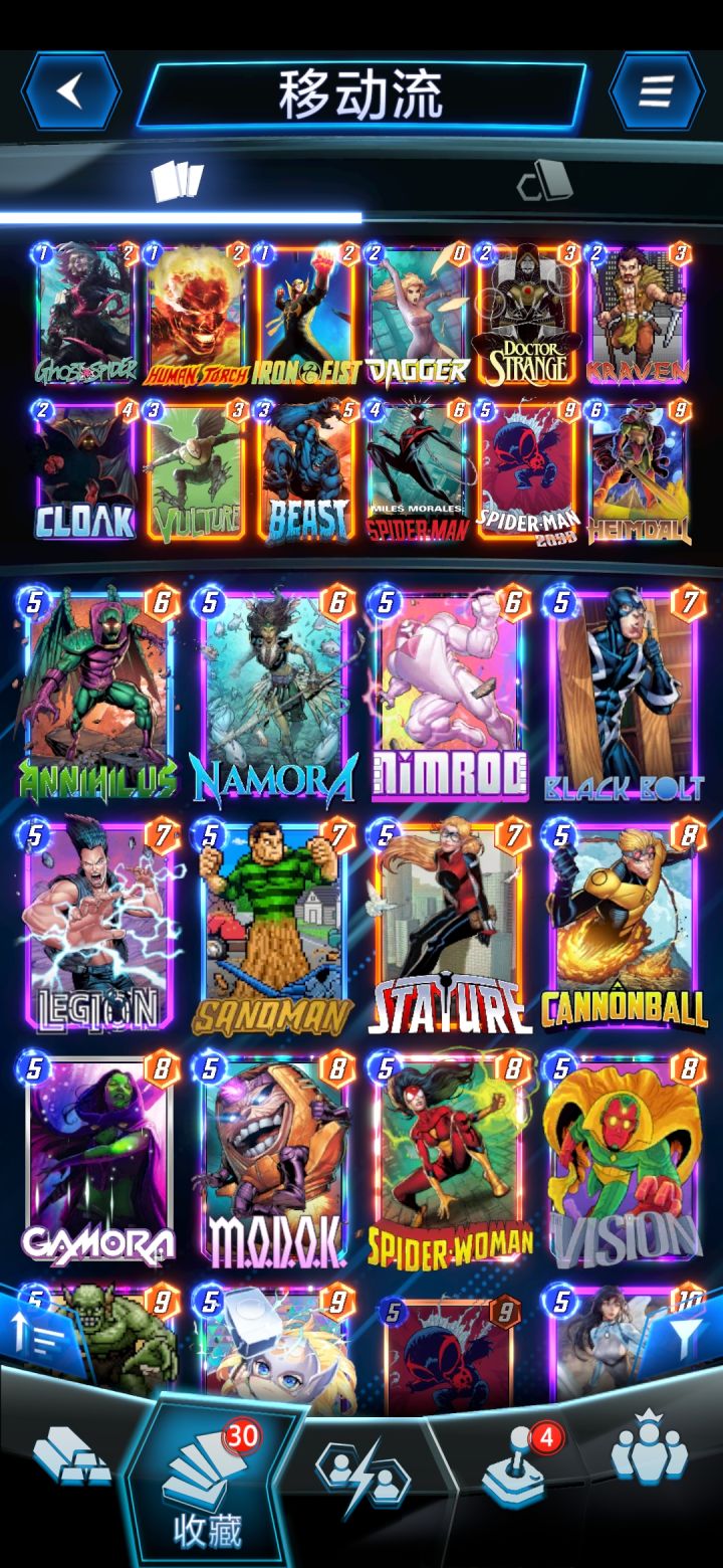 主要思路是通过铁拳+霹雳火+蜘蛛格温的combo,配合野兽或猎鹰再次打出combo,养个32攻的霹雳火,5费打秃鹫+匕首或蜘蛛侠2099,最后打海尔达姆完成斩杀