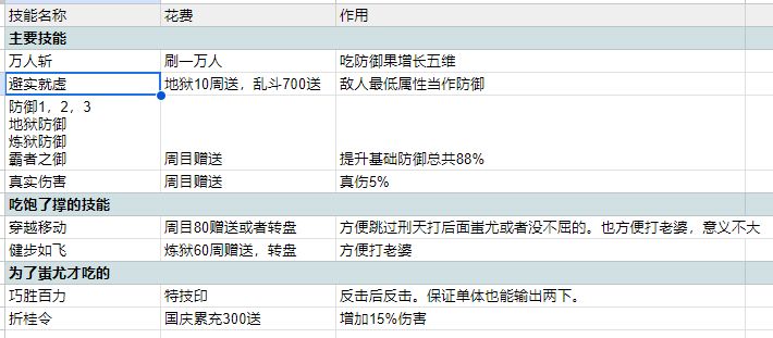 特技我就不贴表格了,只有物理必中(乱斗200送)和真实伤害(周目送)。