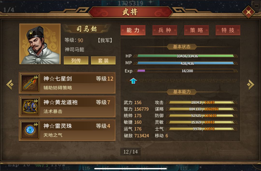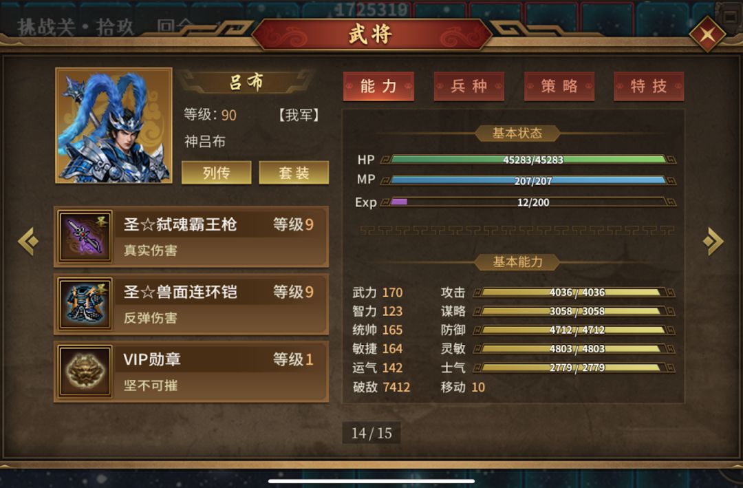 司马懿必须要一个武力武将来处理炸完剩下的敌人。70周目之前我选择的浮生。但是同时练智力和武力果时间成本太高,于是在70周时,我换成了吕布。吕布只依赖真伤所以消耗资源比较固定。并且周目赠送大量神将印,方便合成天魔形象。吕布主要依靠真伤,我的吕布在敌人90周目30真伤防御下,带赤兔可以两下打死一个人,否则需要三下。