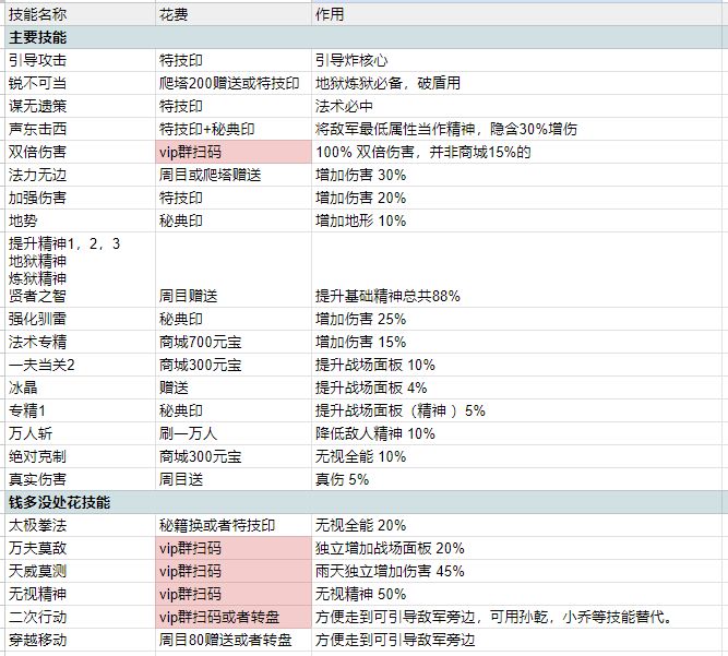 司马懿所吃的特技,红色为比较昂贵