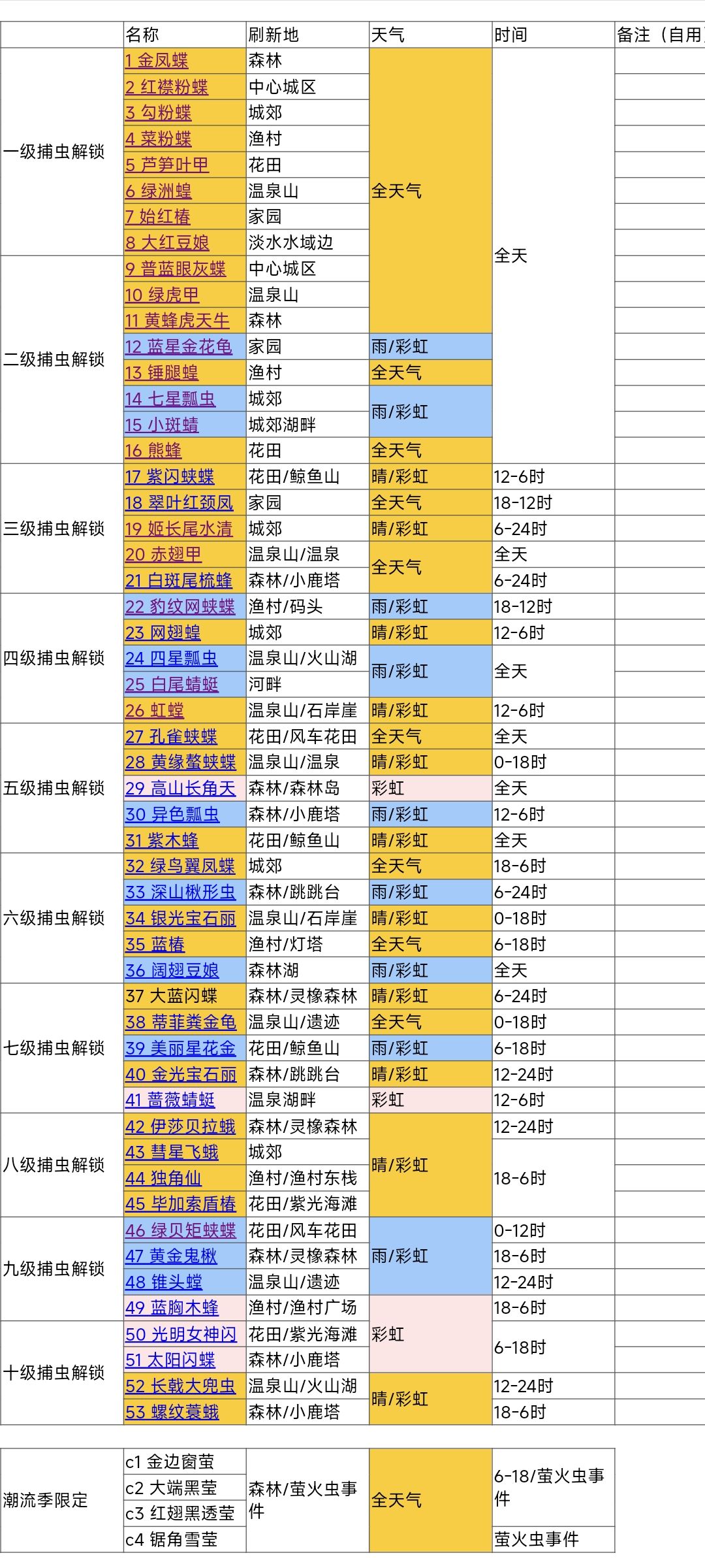 虫类刷新存在错位刷新bug,严重超出刷新时间请大退游戏5分钟起步(保险起见10分钟)