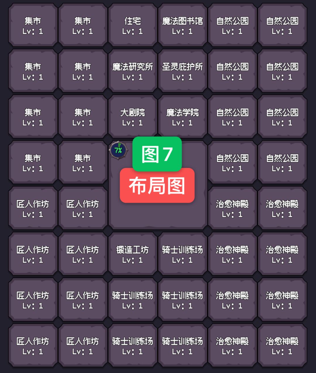 6、领地开启后按照图7的建筑进行布局。