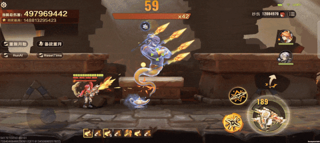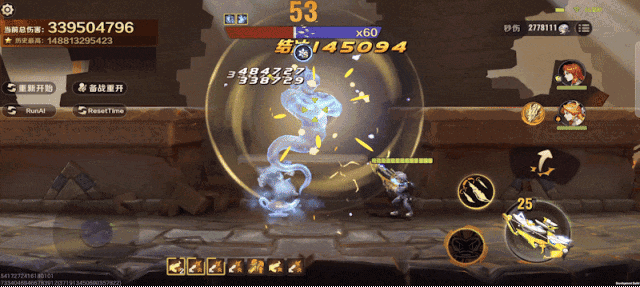 实战中玛蒂娜带头冲锋,利用双持冲锋枪的高射速优势对敌人施加弱点状态,开启裂星赤穹造成高额伤害并召唤幻影分身助战,强化火力,蓄势待发!