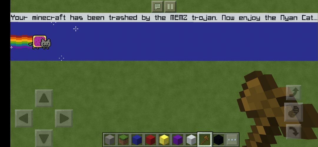 近日,一外国小哥在自己的手机上尝试运行MEMZ彩虹猫病毒时,意外地发现自己的手机也能被病毒感染,他手机里的MCPE呈现出了下面这样的状况: