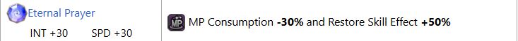 效果:mp消耗量30%down,回复效果50%up。