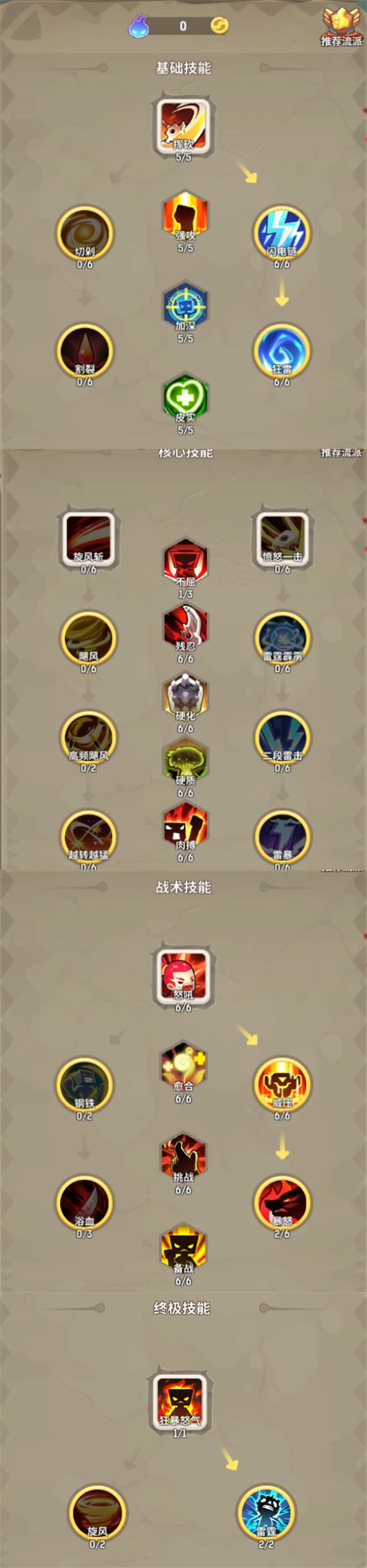 1.基础技能【挥砍】【闪电链】【狂雷】【强攻】【加深】【皮实】全部点满,无异议。