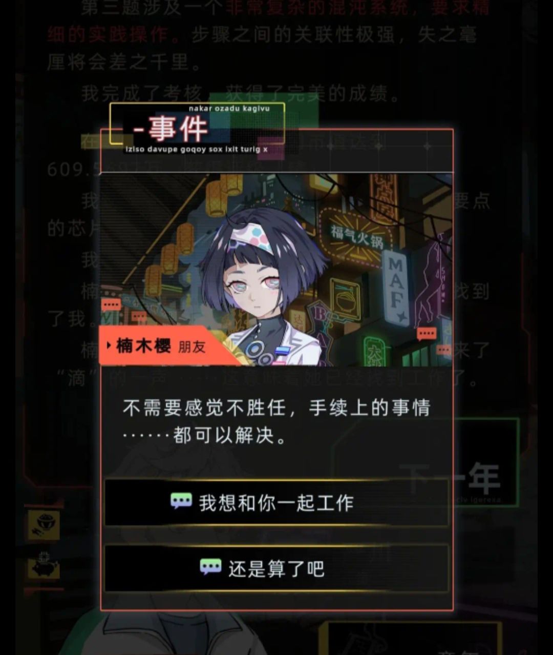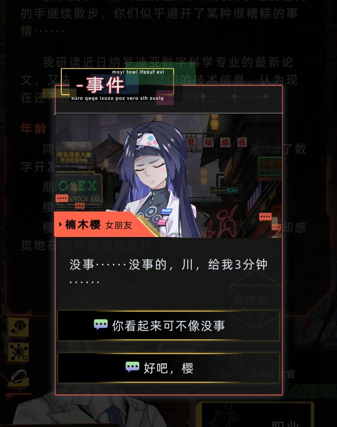 在樱看上去很痛苦并让你等待三分钟的时候,选择“你看起来可不像没事”,问她到底怎么了,刨根问底,然后答应帮助她,之后会有一系列的梳理底层逻辑任务,第一次的时候选择使用函数,调整参数,⚠️这里不能尝试新函数!做完系列任务之后就完事了。