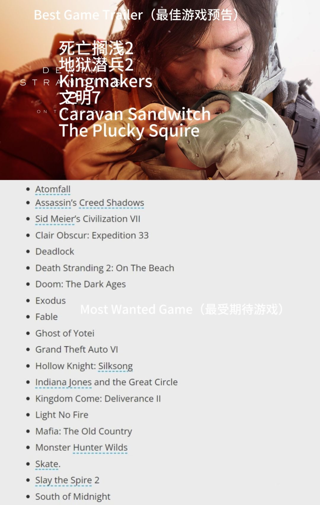我的观点是一个游戏奖项,应该符合大众的审美,应该体现游戏市场的发展趋势,应该指导以后游戏的设计方向。