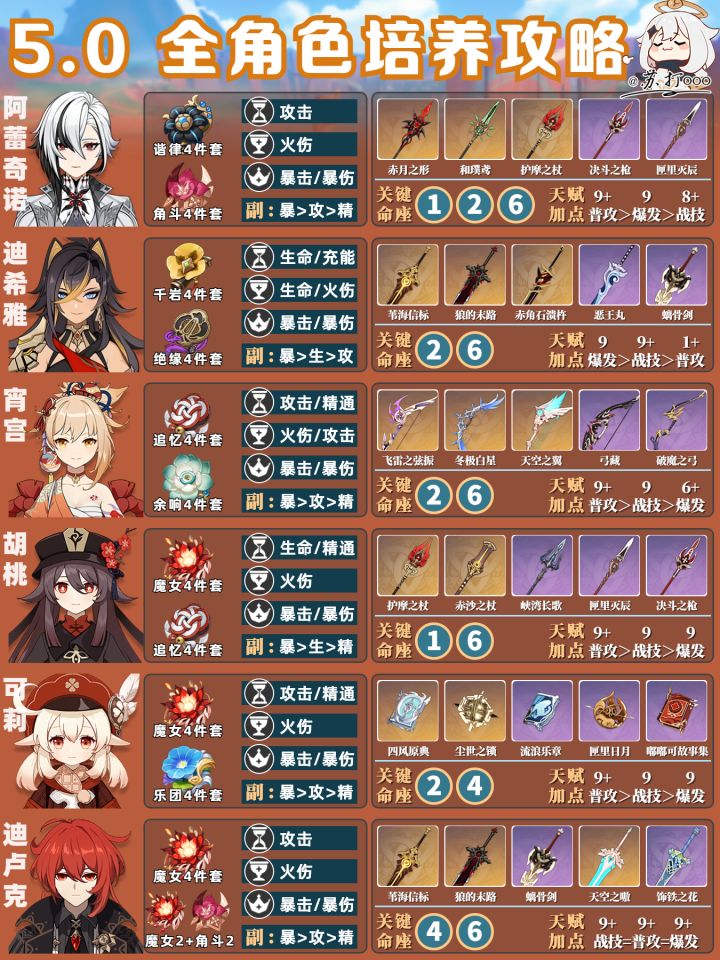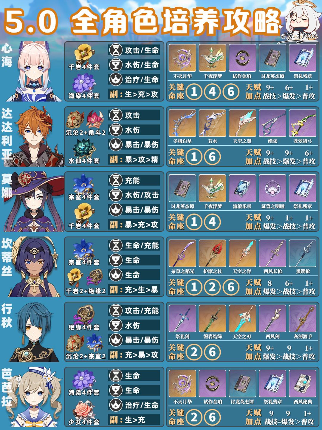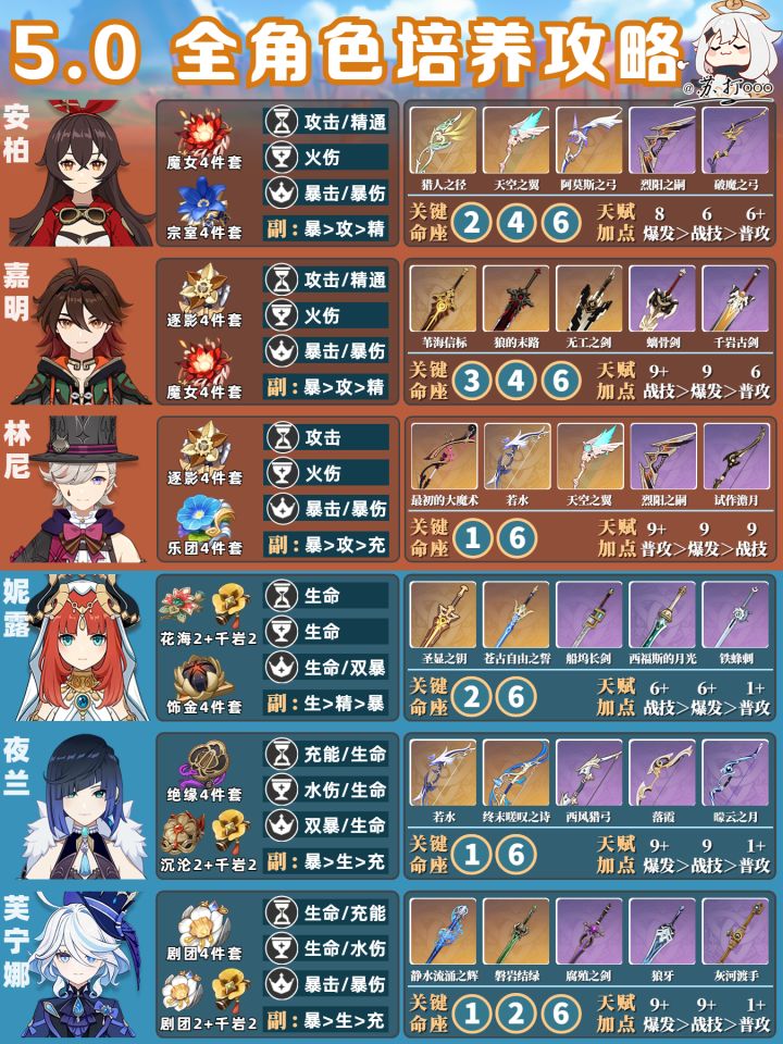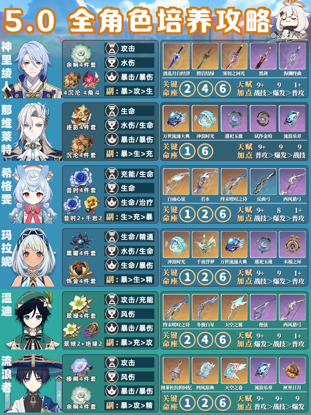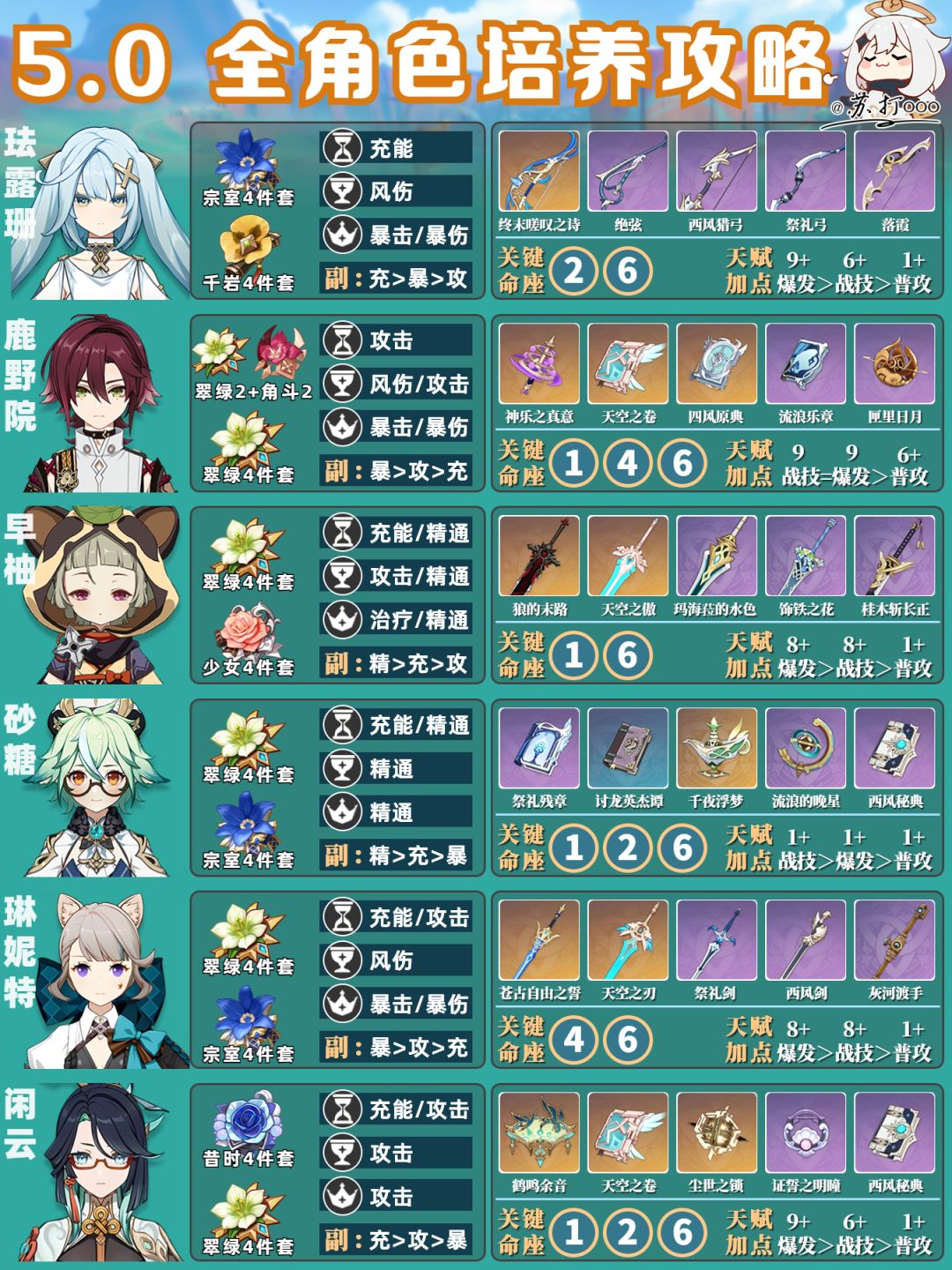 【V5.0攻略】 5.0最新原神全角色培养❗