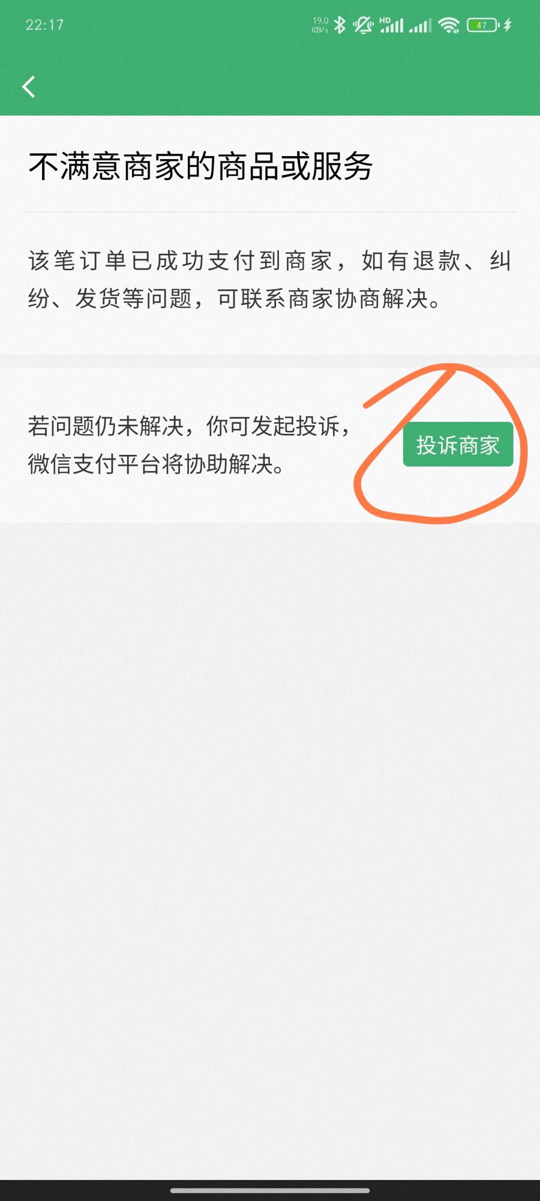 我自己投诉理由是写的本体退款,但是dlc无法退款,然后附上本体退款的一个退款的一个订单截图,然后微信客服会把我们这个投诉订单给到商家,然后商家会处理