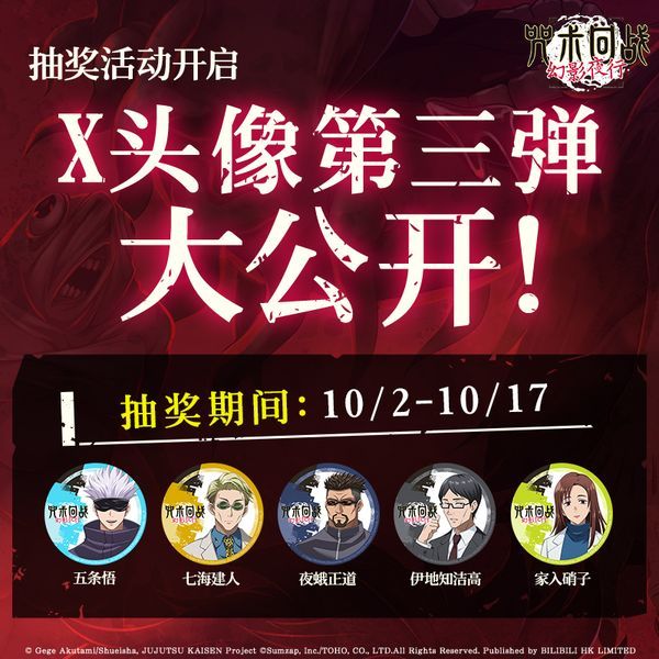 关注 咒术回战幻影夜行 官方账号,转发本条贴文并tag一位好友,即可视为参与活动