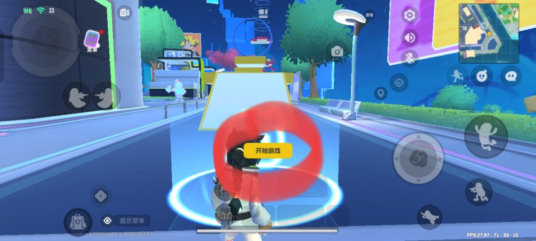 靠近蓝色圆圈即出现“开始游戏”(不是指经典、街机等模式,而是这个跑酷游戏)