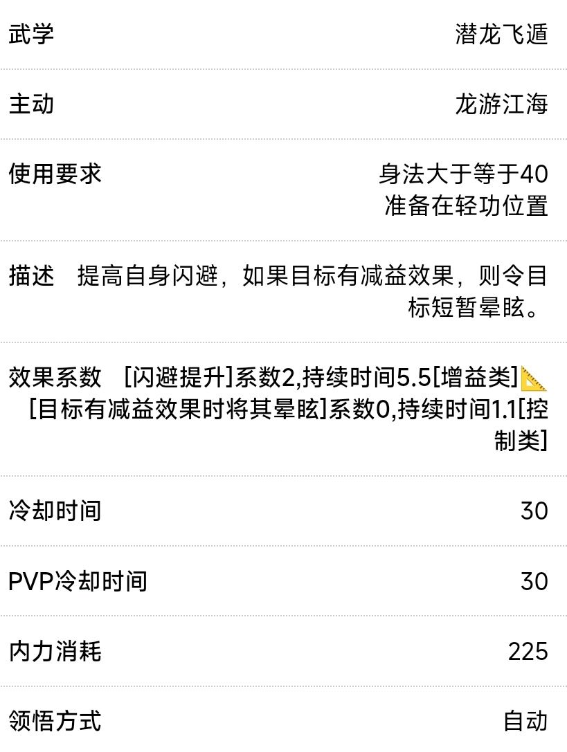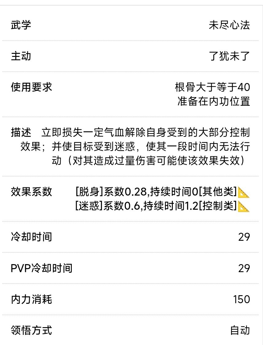 如果各位少侠的门派中自带控制,也可以使用门派武学配合江湖控制来进行速通: