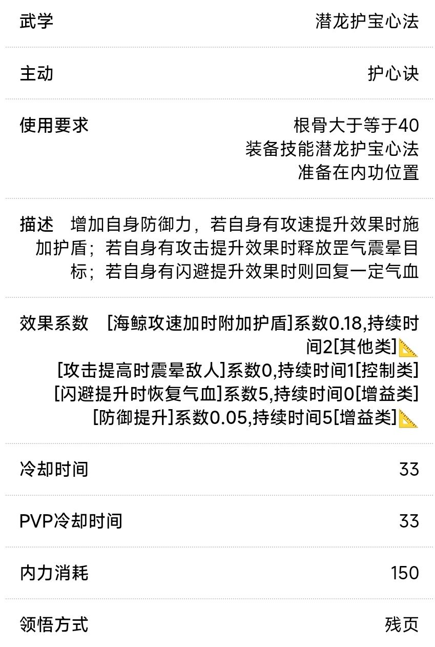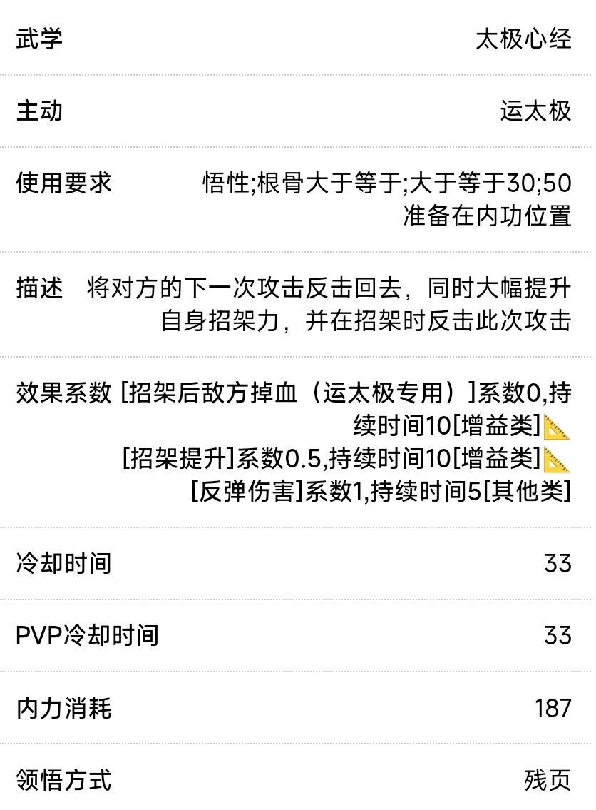 另外有些可以装备在招架提供偏转反弹的技能,如慕容移星瞒天,明教乾坤挪移功,崆峒病维摩拳等,都要求十张顶级残页解锁且绑定内功,使用起来较为繁琐(其实也是没必要)我们不作讨论