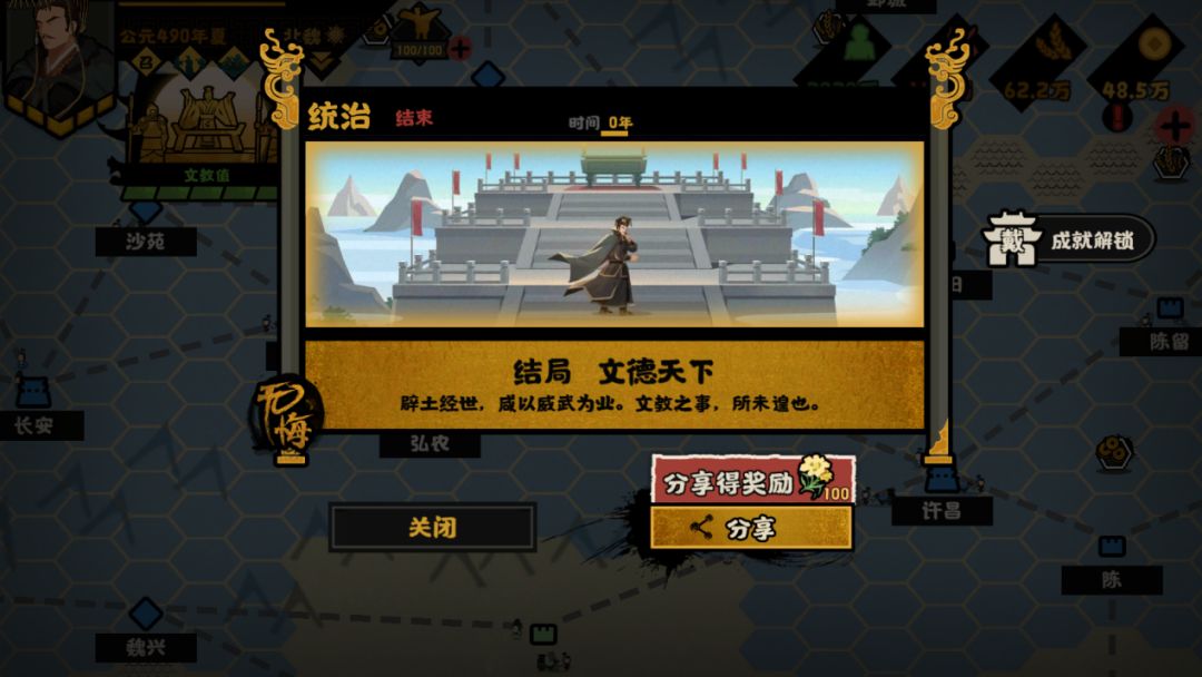 完成主要目标且未一次性完成所有次要目标,则根据达成的目标数量不同,获得普通结局——胡汉合流、朔风劲烈、未竟全功