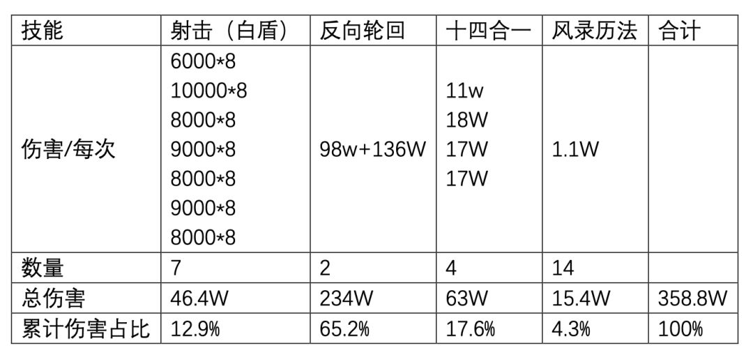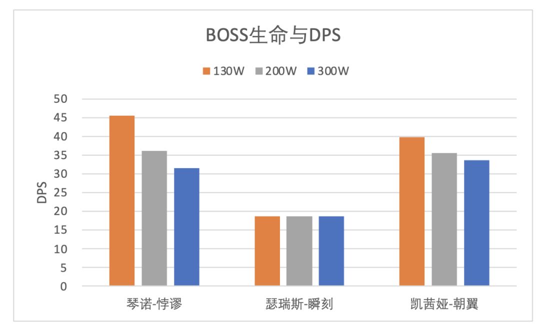 由于各角色的爆发伤害数值和周期各不相同,使得在面向不同血量的Boss时,呈现出了不同的技能组合和DPS情况。
