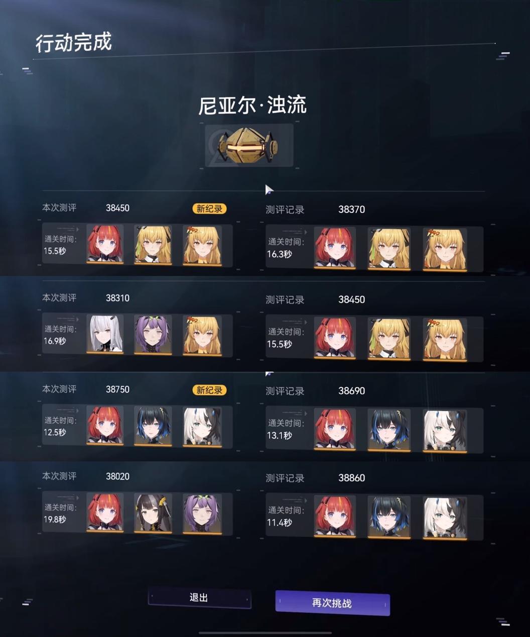 精神拟境中BOSS尼亚尔·浊流战斗过程,瑟瑞斯-瞬刻小队输出伤害如下。