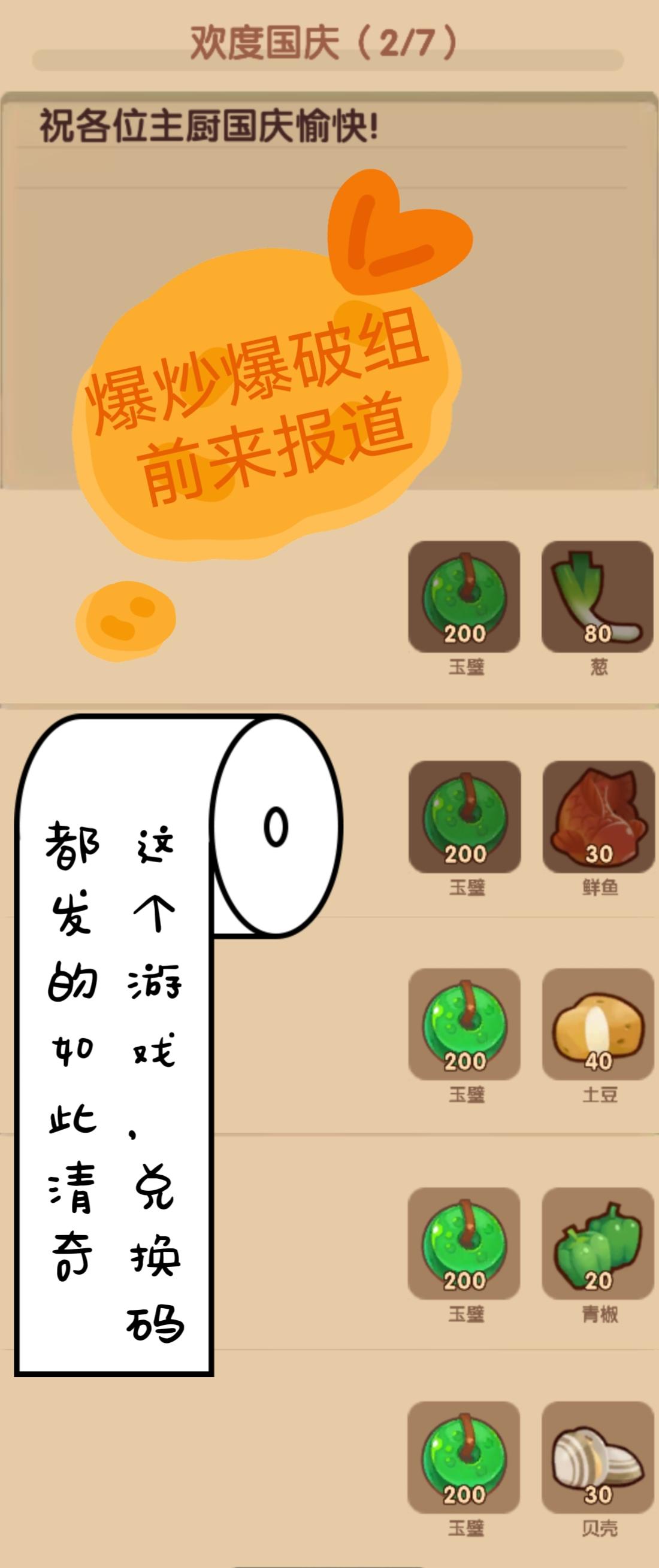 1.编各种小故事,从故事中猜兑换码食材和数字。这个兑换码曾经还衍生出了“爆炒江湖猜谜群”,里边各位大佬纷纷发散各种脑洞,被小破炒虐的死去活来…有谁记得当时猜谜有哪些“小组”吗?