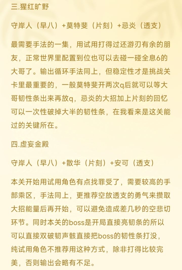 选择片刻的回忆的话更推荐直接切卡卡罗来进行破韧,效率更高。轮切手法与上方第四关打法类似。