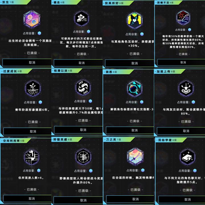 双生,商城购买天赋,可能双生子是好多人喜爱的属性,可在未来人生中并没有特殊剧情,起码我没有触发过。兄弟姐妹唯一作用是你家族谱里面的旁枝还有分爸妈遗产