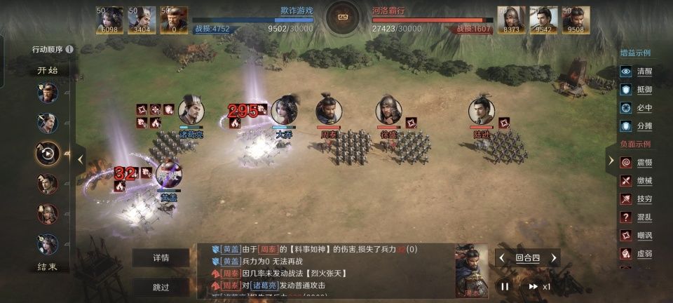 所以在此需要特别鸣谢游戏ID名为“河洛霸行”的玩家朋友,他给我们提供了一个不一样的剧本,也给本文提供了宝贵的奇幻创作思路。河洛霸行面对口碑上佳的大黄猪组合,利用麾下的徐盛、陆逊和周泰摆出箕形阵,而且是让周泰学魔法来辅助陆逊,才过半场就锁定胜局。具体是如何筹谋的,细节都整理在了下文的段落里。