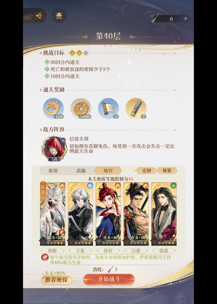 如鸢『地宫一期』40层2星通关