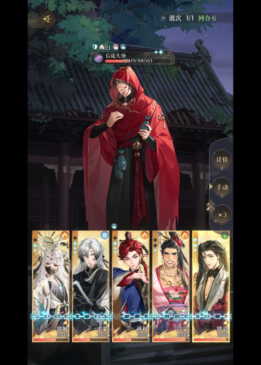 因为Boss天赋5%血时对全体密探造成500%攻击(图3),根本扛不住,靠郭嘉被动把Boss带走吧,主打一个同归于尽。