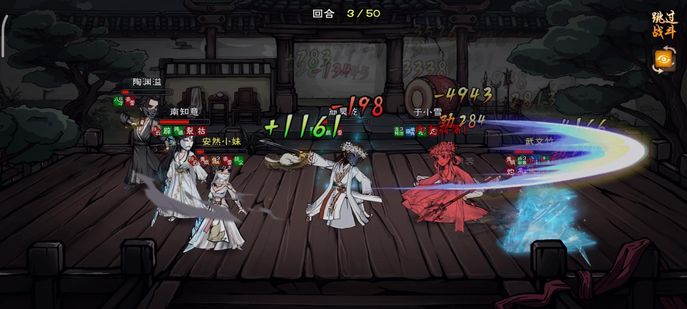 开内功加15%伤害,125真元15聚气五狱能在第三回合吃到buff开纵横,配合青蛾加伤总计45%,这个纵横开了之后