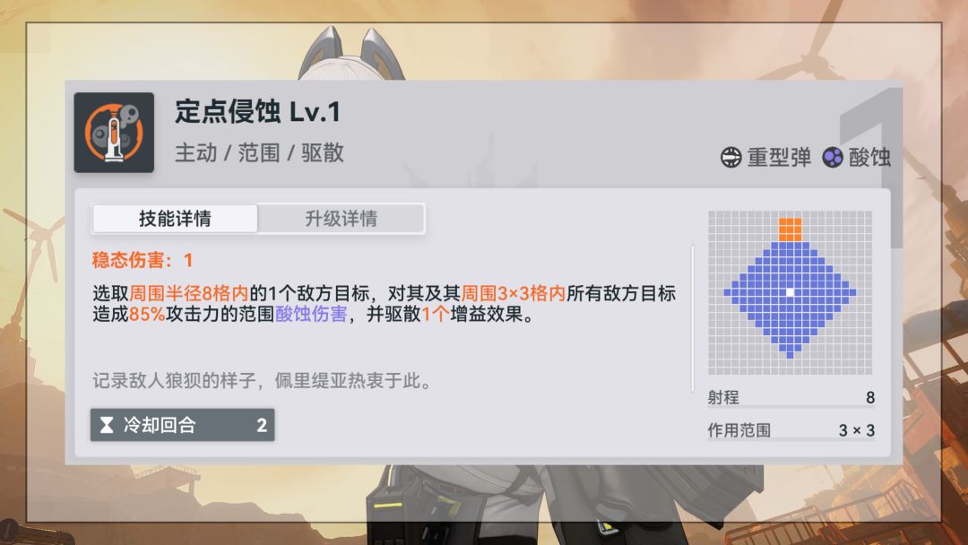 强度从开服就一直未来可期的佩里缇亚终于也是迎来了她的春天,现在可露凯的降临加上米什缇的超级增伤终于能让大猫猫能够完美发挥她的全部实力了。她的强度也是达到了1线的水准,属于是只要玩酸蚀队就必练的角色。