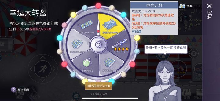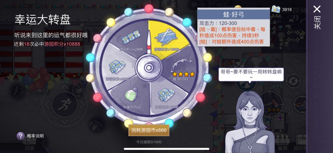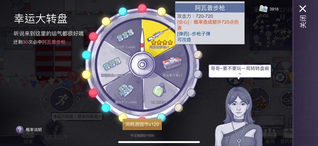 对于每天活跃于游乐镇的游客,可衡量自己每天在线时间再去考虑是否抽轮盘,如想第一时间兑换出常驻5星或未来的限定武器可以将每天获得的游园币拿去游玩节假日开放的“让子弹飞”游乐项目,这是目前我们已出的获得积分最高性价比且最稳定的项目,同时游玩该项目也能获得弹壳及步枪子弹资源,更适合经常使用步枪的游客,该攻略对零氪及月卡游客同样适用,当然,如常驻或限定抽奖池有想要或需要的武器奖品也可以拿去抽该奖池,虽无玩小游戏来的积分效率高,但都不影响后面积分兑换五星,根据自己的需求来选择拿去抽奖获得奖池奖品并攒积分或玩小游戏从而快速积攒积分就行~