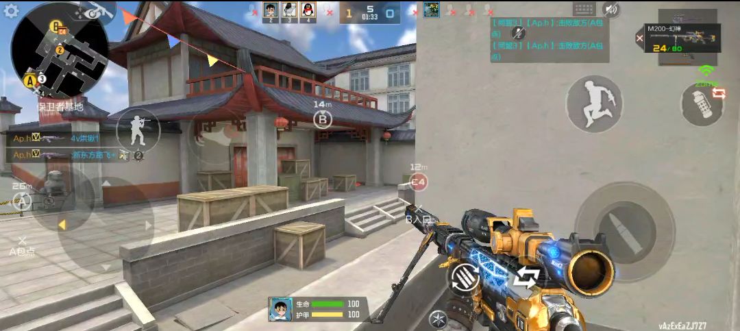 B通进攻的前提是需要清理掉B点的狙击手,可以选择站在左边高箱上架狙,或者是在右边靠墙位置,依靠建筑物为掩体进行射击。