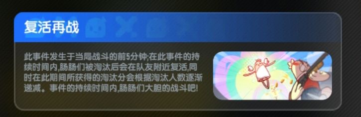 ⭐事先说明:在出生岛会随机出现2个事件给大家投票选择,每局会选择肠肠投票数量最高的1个事件(💡没有自己需要的事件可以选择退出游戏,但是必须要在出生岛才可以,否则上了飞机就会掉分)上飞机后会公布本局游戏的事件,“复活再战”只会存在游戏的前5min!!其他战场事件全局存在!!
