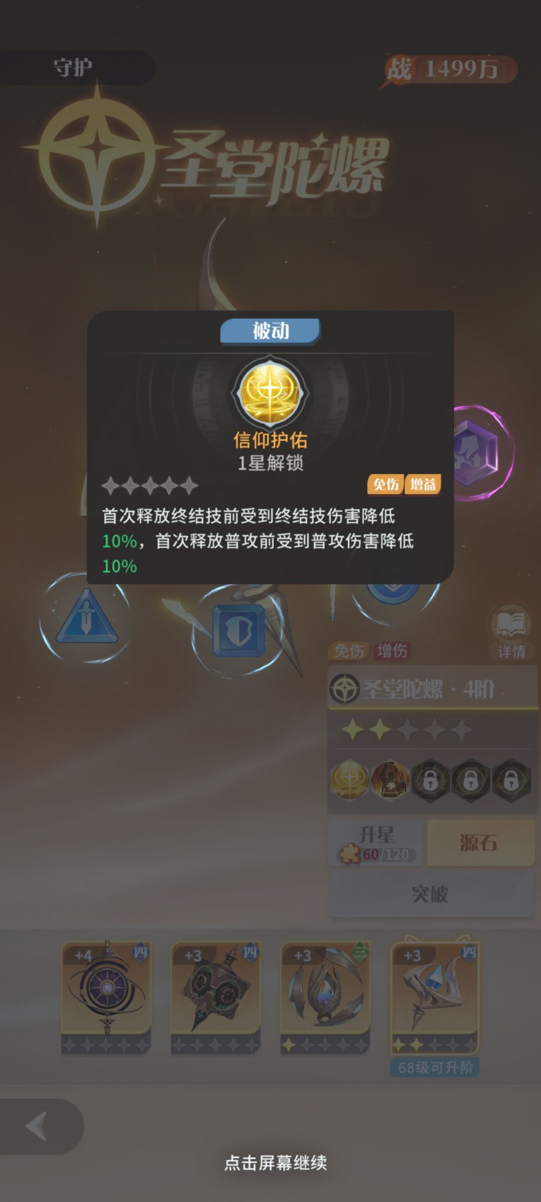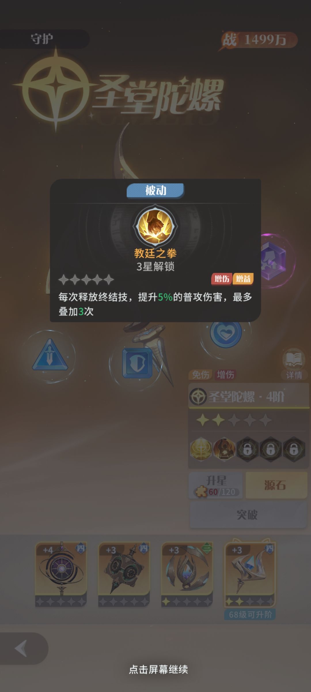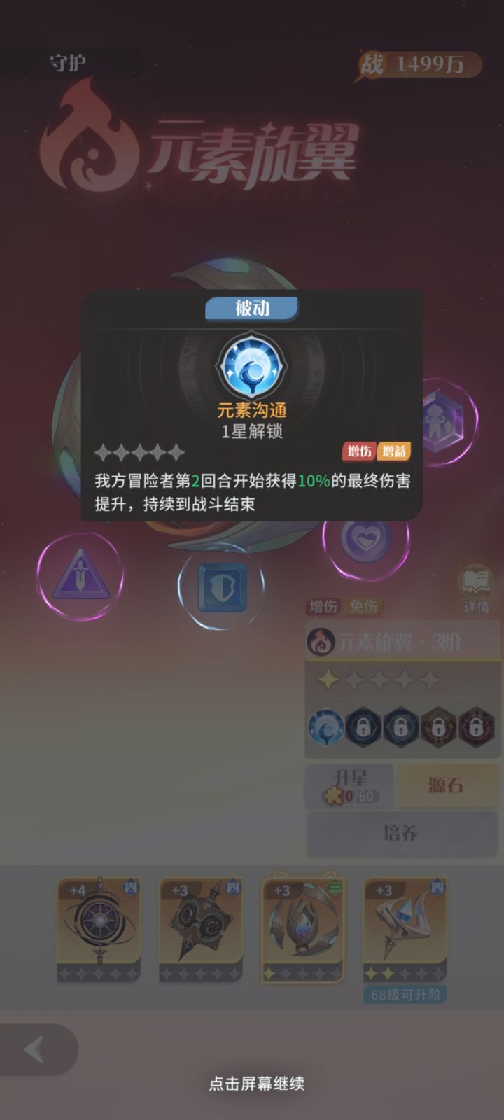 最后是升星,这个尤为重要,不要自己玩啥阵容就只点啥,推荐先升星元素,发的图,可以看出,其他三个阵营都是首回合首次,而元素可以在第二回合持续到战斗结束,如此,高下立判,不过如果玩的是圣堂,还是要点圣堂,三星和五星对雷娜来说提升很大