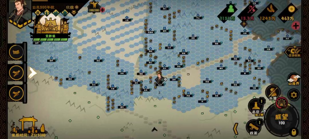 郦道元开局朝会要闻有事件,把他提到尊位能加团结度,要招郦道元最后要结束的时候再招。好像就只有一个名臣。