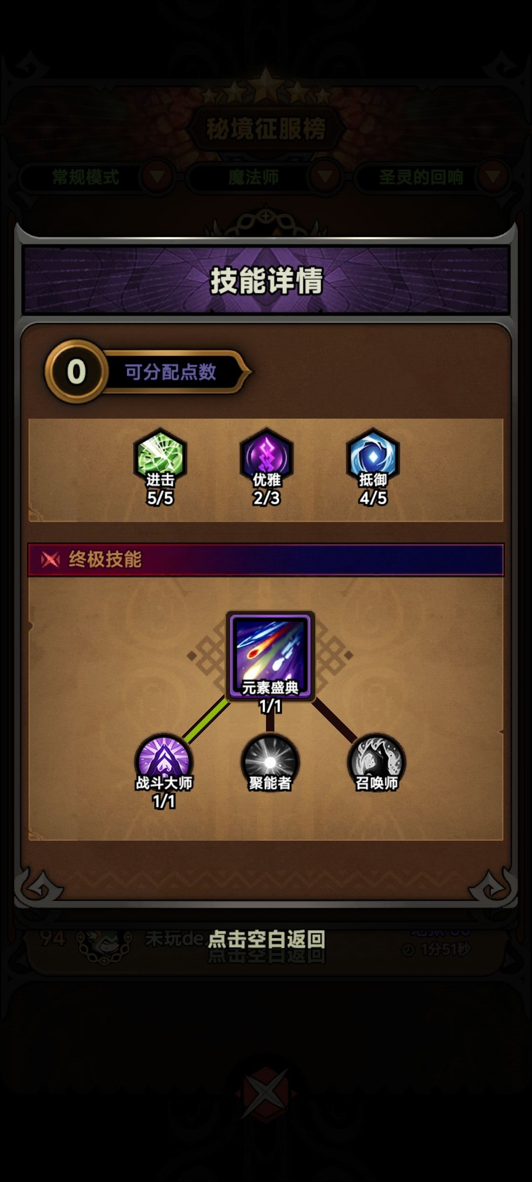 因为可能还是会有人需要配装跟技能加点,所以还是放一下图吧。技能这么加点主打一个肉,能莽,过图舒服,不脆皮。在同等装备下我试过霜降叠层,在你没有过70层以及很多远古去神铸的时候,没有元素潮汐的增伤是完全比不上冰普攻的。