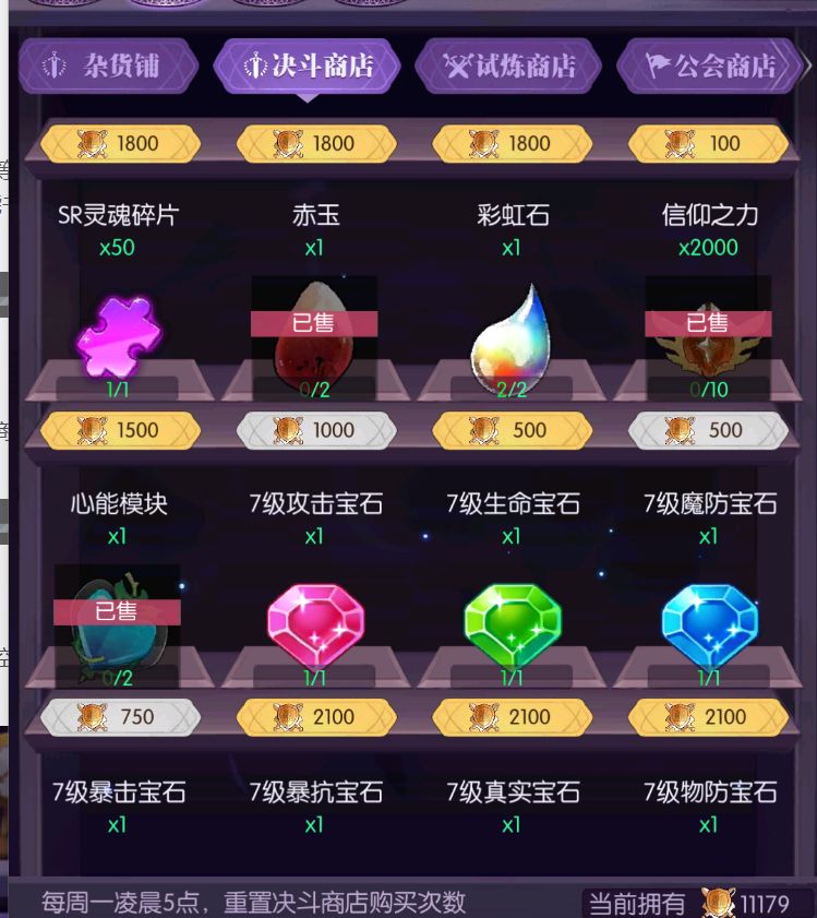 ●决斗商店r4决斗商店将在500层刷新信仰,2000层刷新赤玉,记得每周购买,也是白嫖玩家除活动外最大的信仰、赤玉来源