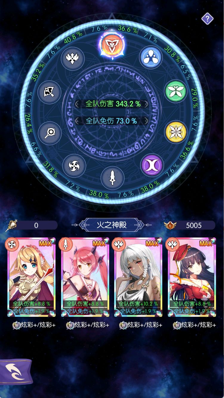 ●图战23亿(羁绊42%,卷轴280级,信仰伤害60%)可以到达r4 4700层,此时拥有永久卡的玩家(组队收益双倍)需要刷80张左右的组队券来让主队全员11-0神语,这样图战瞬间来到28e,一路顺风直接到5000层毕业,所以23亿一般就可以当做毕业了