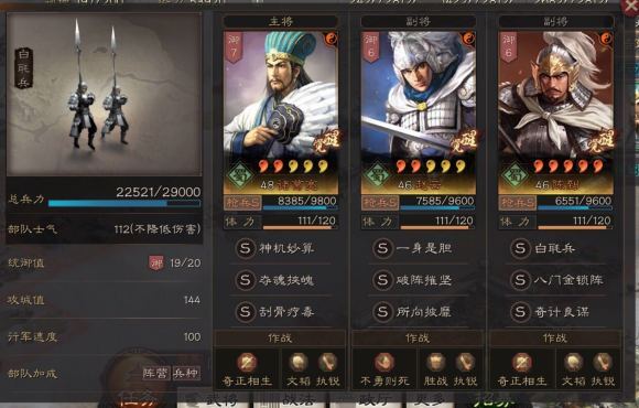 什么叫做功能队伍,对于奶枪而言,就是面对枪(蜀国)内战,以及克制对战,枪打骑兵,能够做到稳定其次低损取胜即可,因为大环境下骑兵属于强势兵种,而将奶枪这样有目的性的更改配队以后,上战场的实用性就有了很大提升,S4以后满级45,原始奶枪想要打架升到满级可以说非常困难。所以该队伍可以作为功能队伍出现在新的环境里