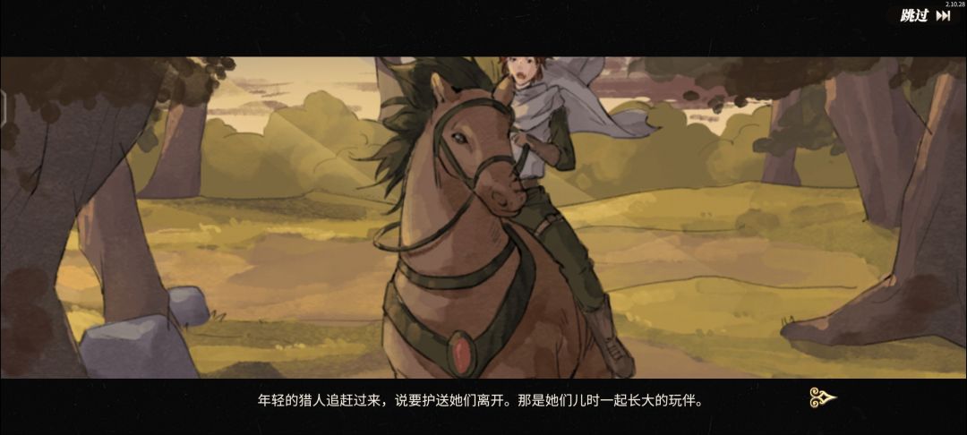 年轻的猎人追赶过来,说要护送他们离开。那是他们儿时一起长大的玩伴。