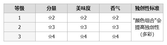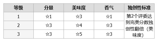 注意:只有在满足属性、甜度和质地要求时才会给予 160 分。如果未满足统计要求,裁判将不会给予额外的 40 分。