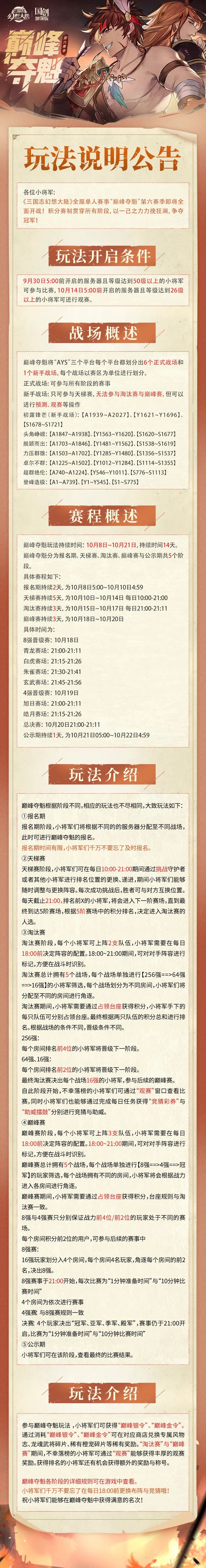 玩法公告|巅峰夺魁第六赛季即将来袭!问鼎巅峰谁为魁首!