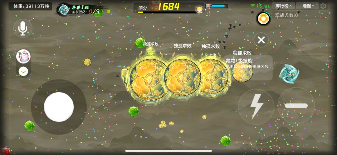 麒麟和青龙的膨胀一级的时候时间很短!并且不要吃了就以为能吃大球了。