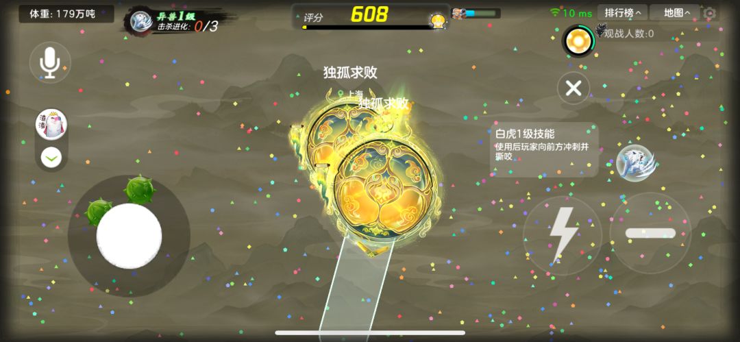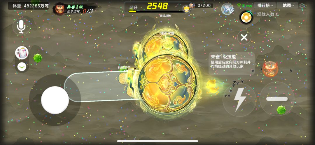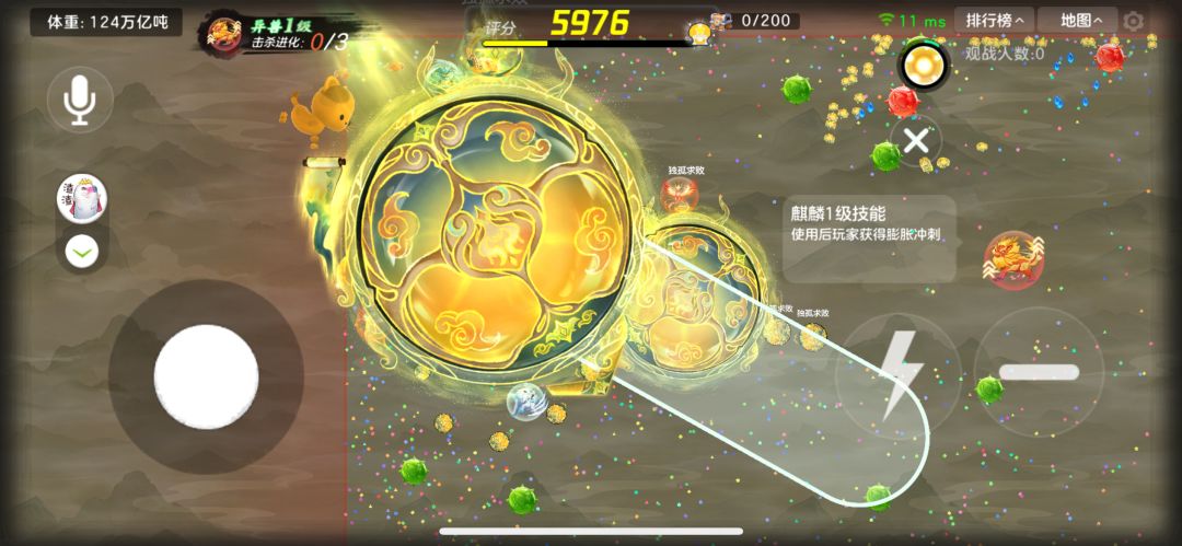 然后在你的左上角的“体重”旁边,通过你吞噬的人数可以进化,会增加技能持续时长或者威力。