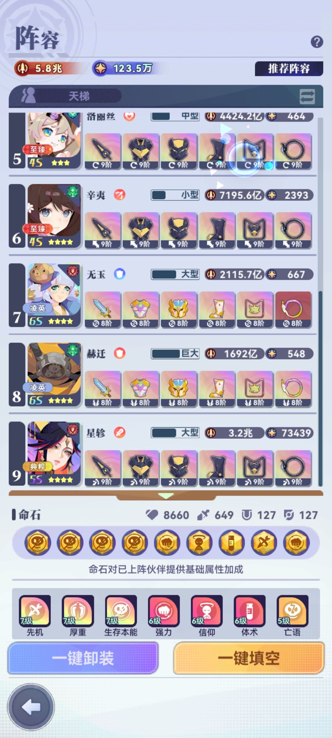 阵容如图,星轸反伤吃双抗,可以洗一套攻击,血量,双抗的九阶反伤套,连携就生存,厚重,强力,信仰,体术,有余力的可以把魔抗也搞了,强度还行