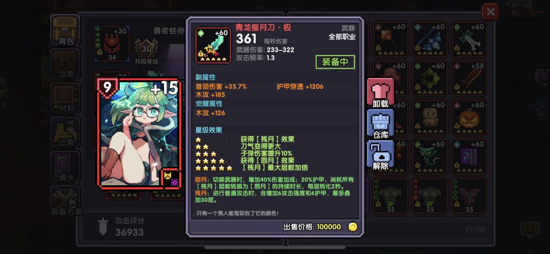 武器还是上面的龙刀首领 穿透 木攻 觉醒木攻 编制爆伤 木攻 暴击 红莲穿透 首领 攻击强 觉醒爆伤 我新水魔女副属性是暴击 杜门也是 这一套带杜门弥补电法首领的伤害 换掉大师是因为新水魔女收益比大师高 龙刀洗双木工 是这一套的攻强已经很高了木攻是弥补电法木攻 鬼袍弥补百分之十暴击加15爆伤