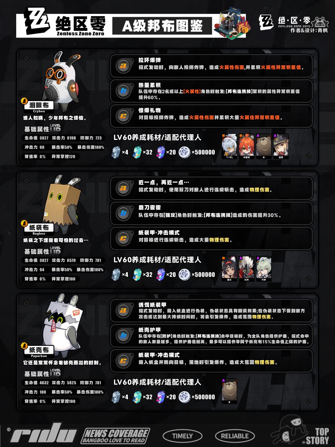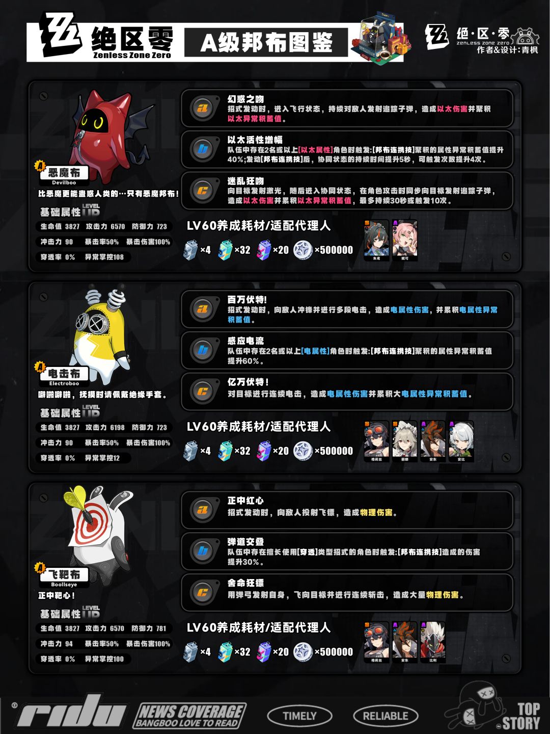 🧿Fairy:接下来以图鉴的形式,整理下当期1.2版本的所有邦布类型,包含各自效果及适配代理人建议;