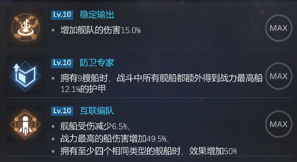 再结合吴秀的第二条技能:战斗中舰队可以获得战力最高的船的护甲;第三条技能:战力最高的船伤害增加。